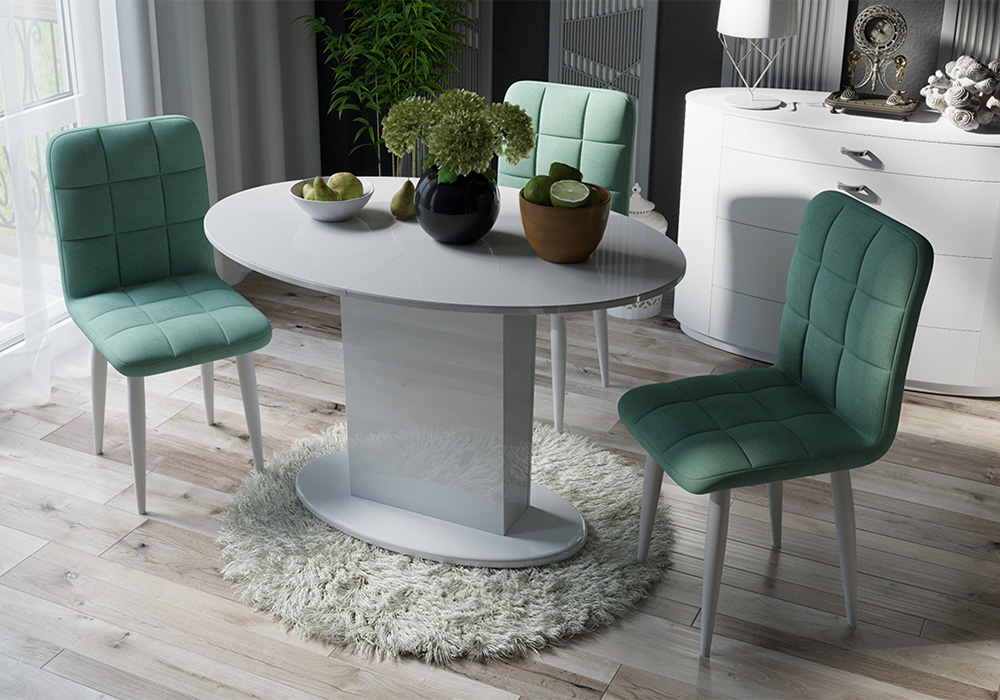 Стул Франк конус белый матовый / микровелюр аквамарин